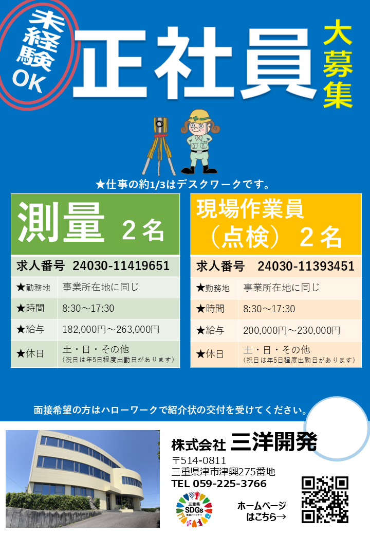 測量、建設コンサルタント業務、営業職、現場作業員(点検) (※技術士、RCCM、測量士等資格者優遇)